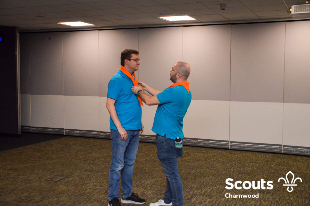 Also during this special sleepover Beaver Leader John had a surprise and was invested by fellow Leader Matt and made his promise in front of all the Beavers.