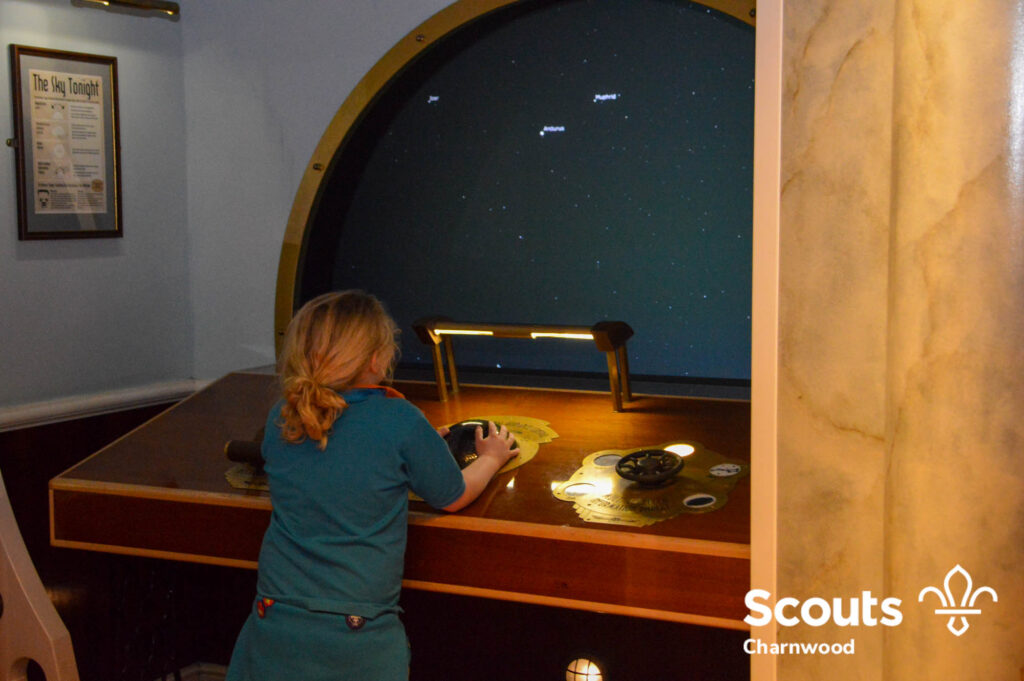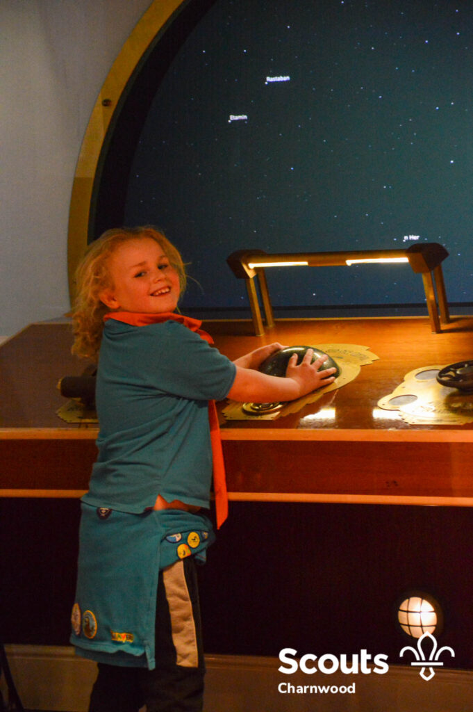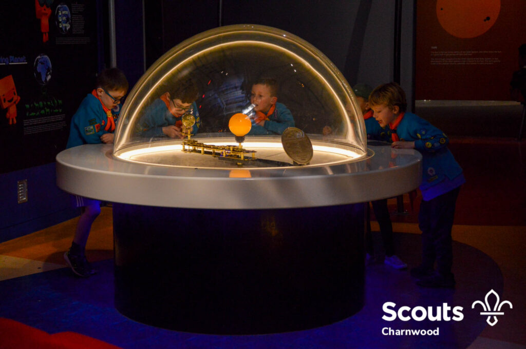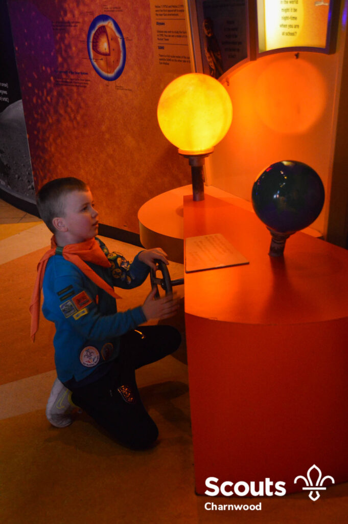 After the talk and demonstration the Beavers got to explore all the different exhibits at the Space Centre looking at our planet, our solar system, the universe and so much more! Next they got to have a hands on activity looking at gravity before getting ready for bed under the stars and watching another film in the planetarium.