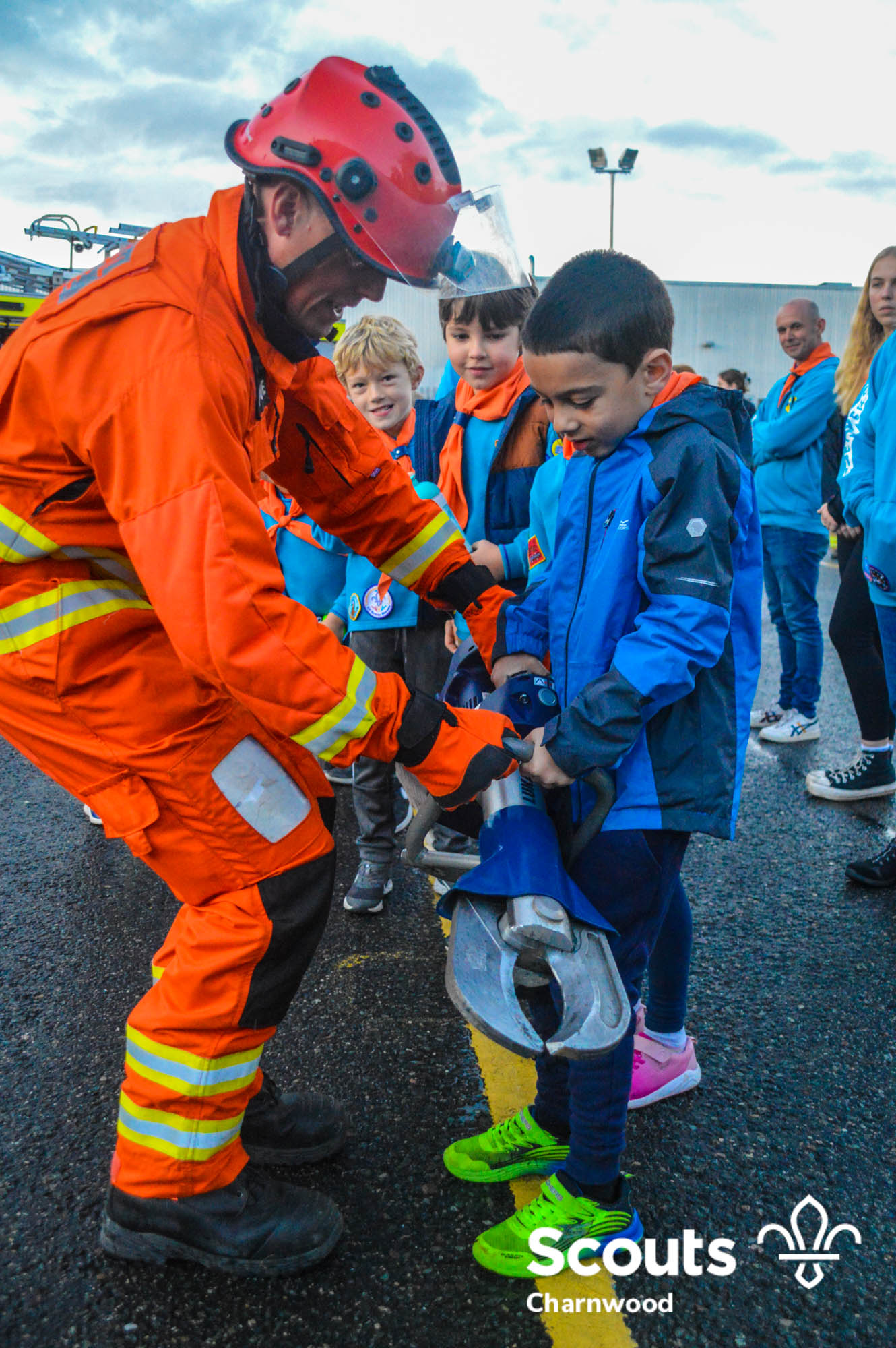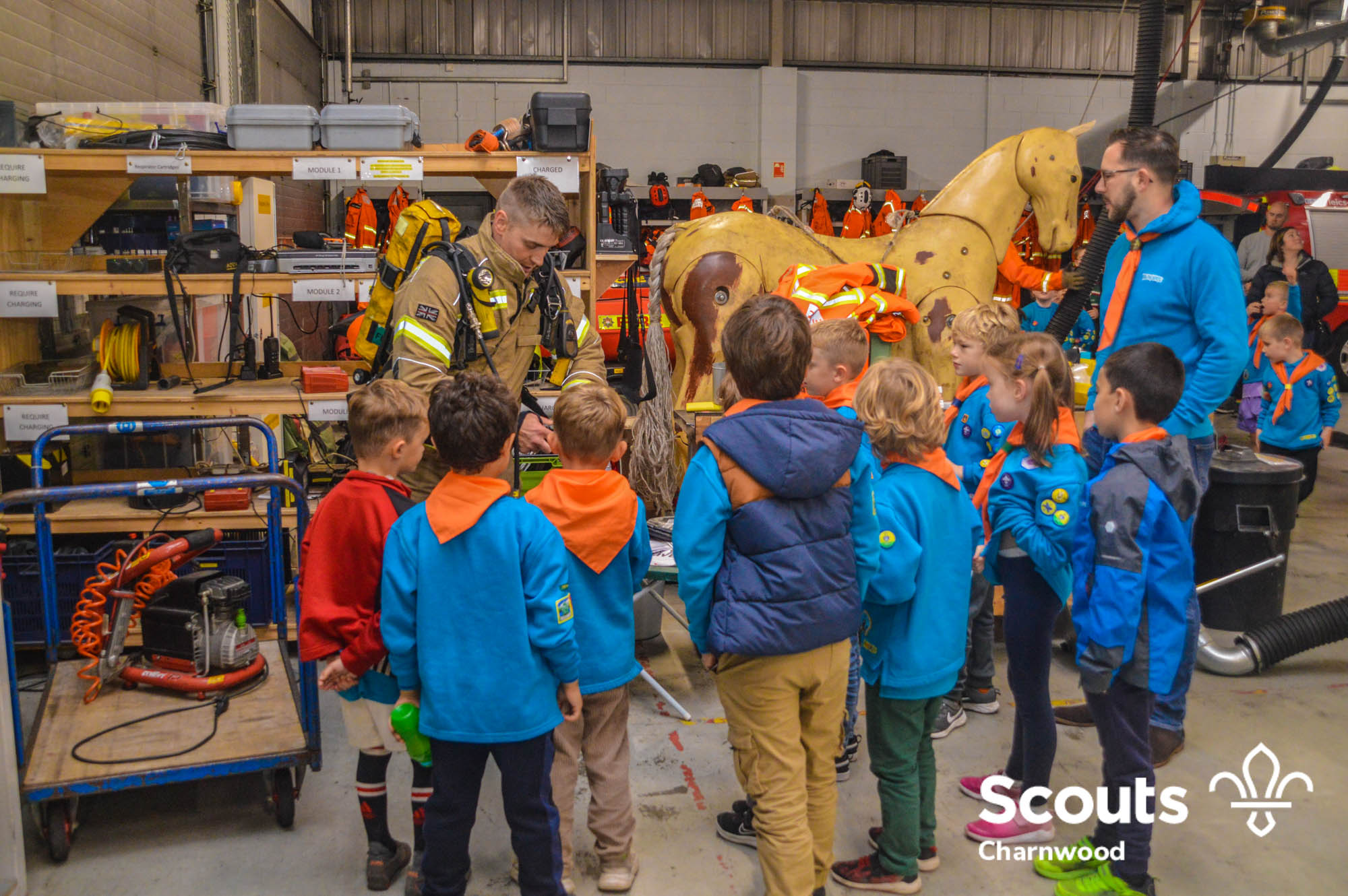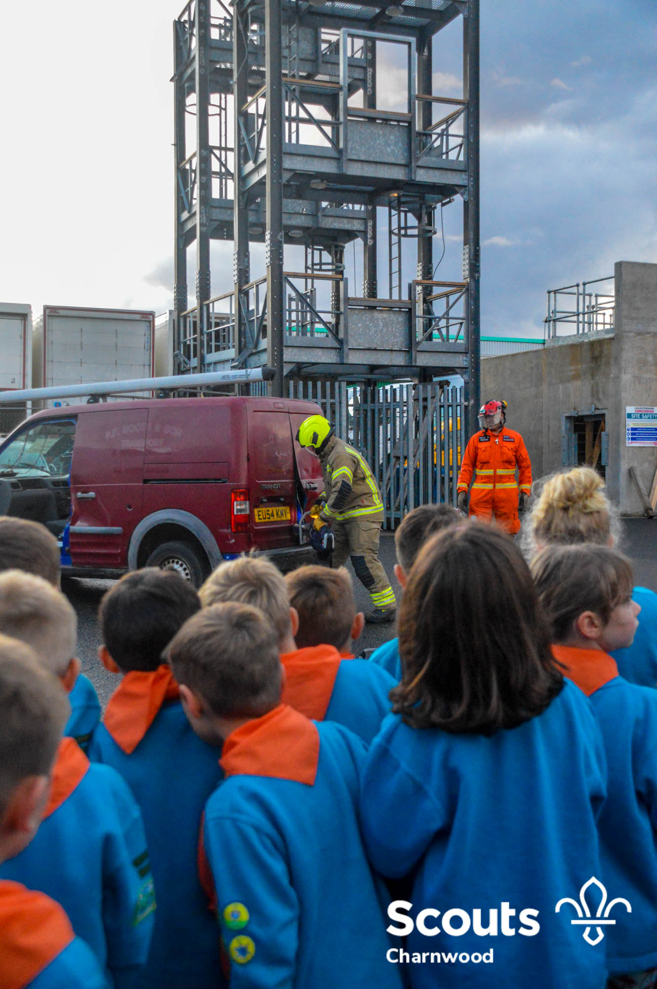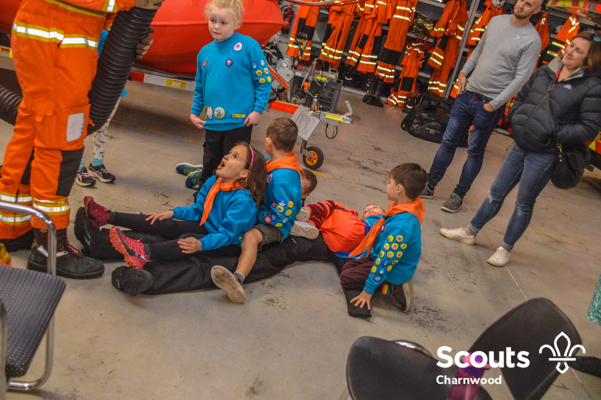 The Beavers visited Southern Station located near Meridian which is also the base for some of the Technical Rescue team. When they arrived, the Beavers were treated to a live tower rescue demonstration of a window cleaner getting stuck against a building which was very exciting to watch.