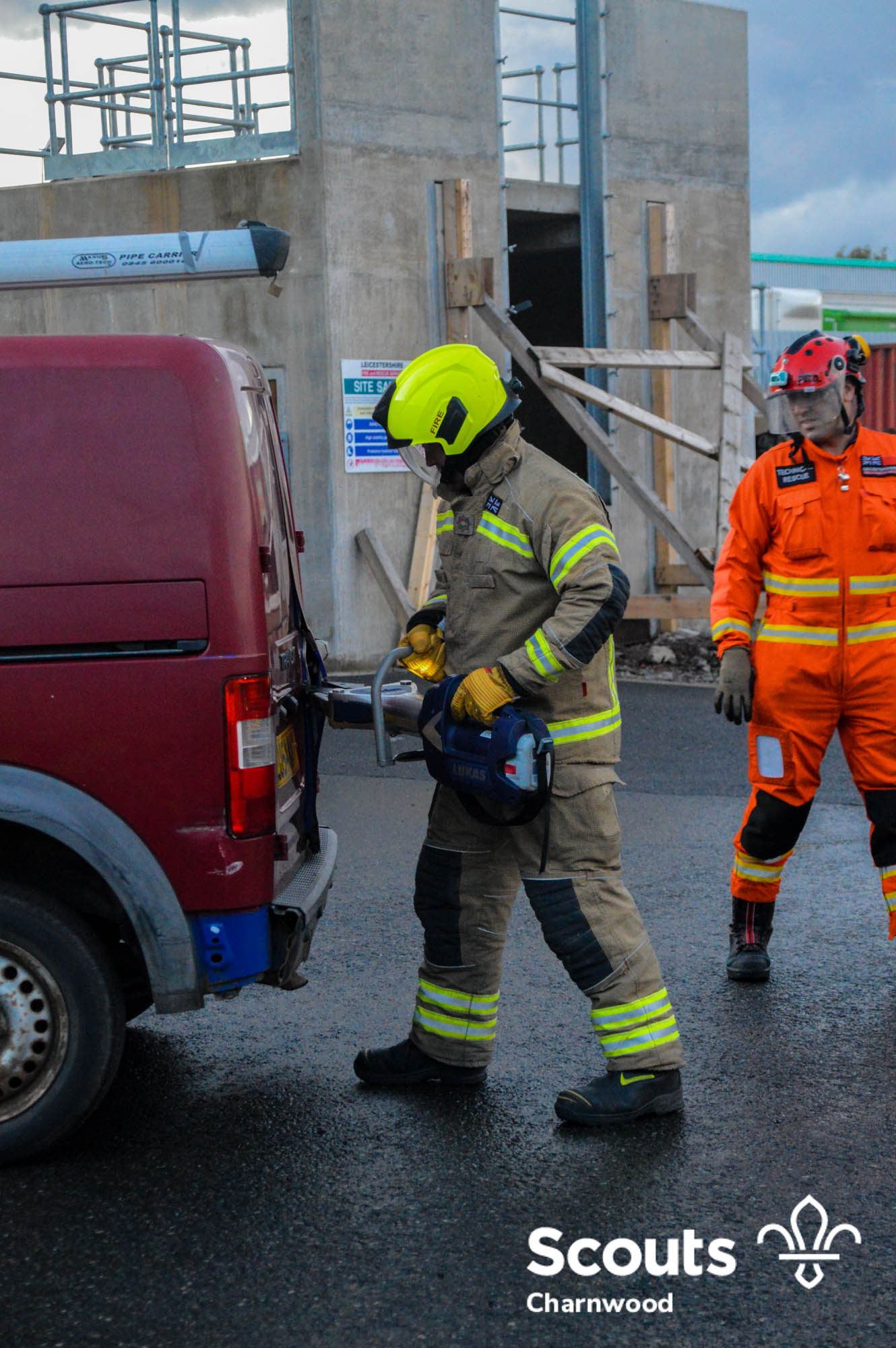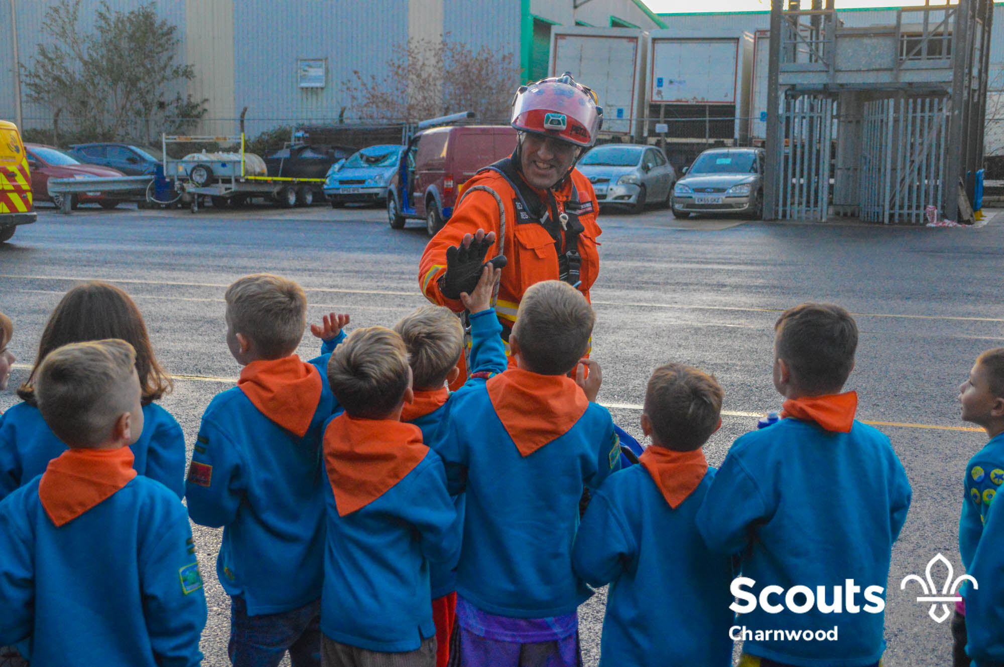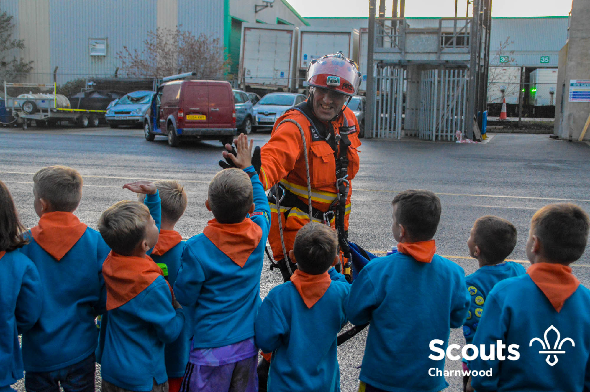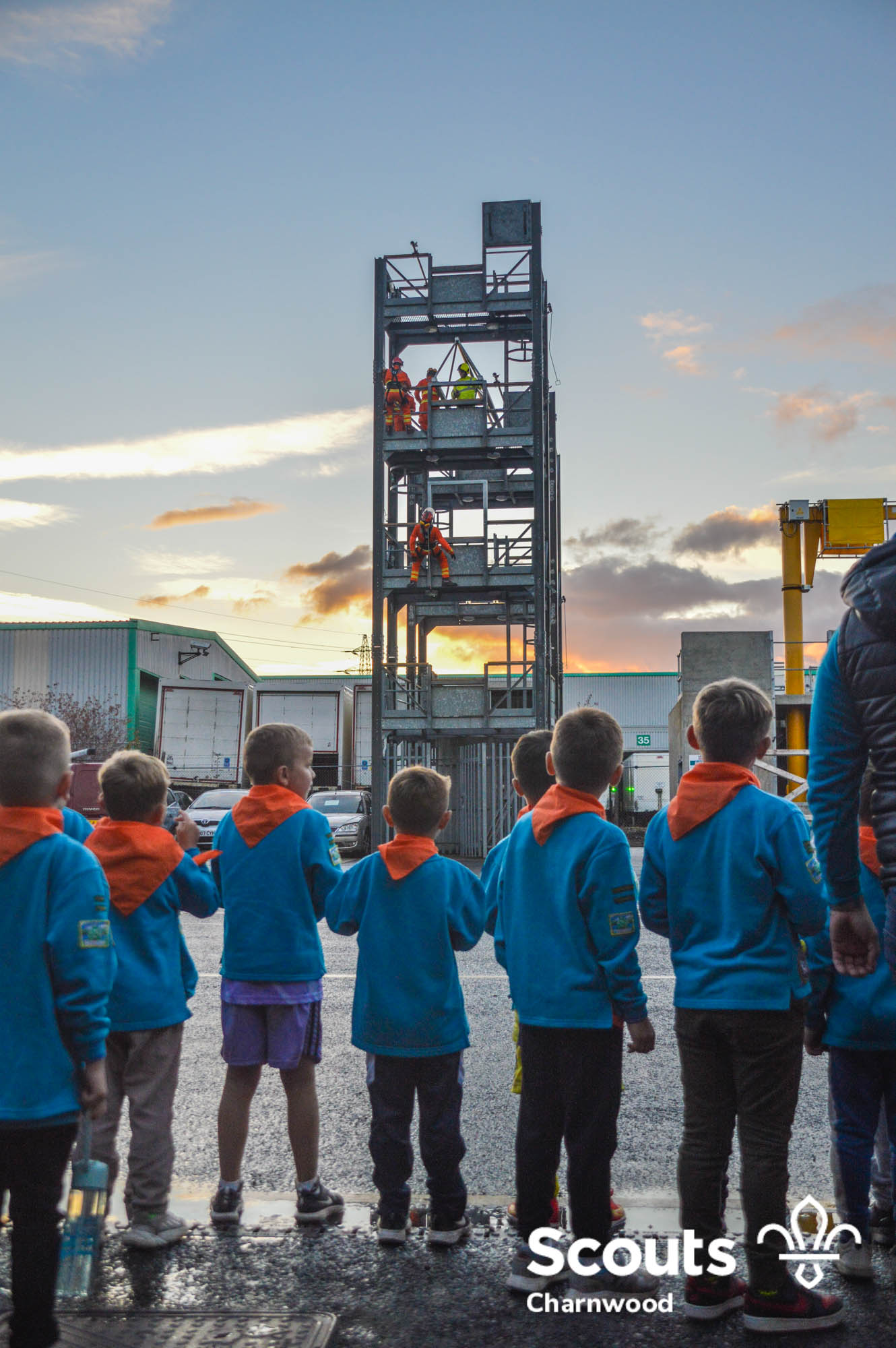 The Beavers visited Southern Station located near Meridian which is also the base for some of the Technical Rescue team. When they arrived, the Beavers were treated to a live tower rescue demonstration of a window cleaner getting stuck against a building which was very exciting to watch.