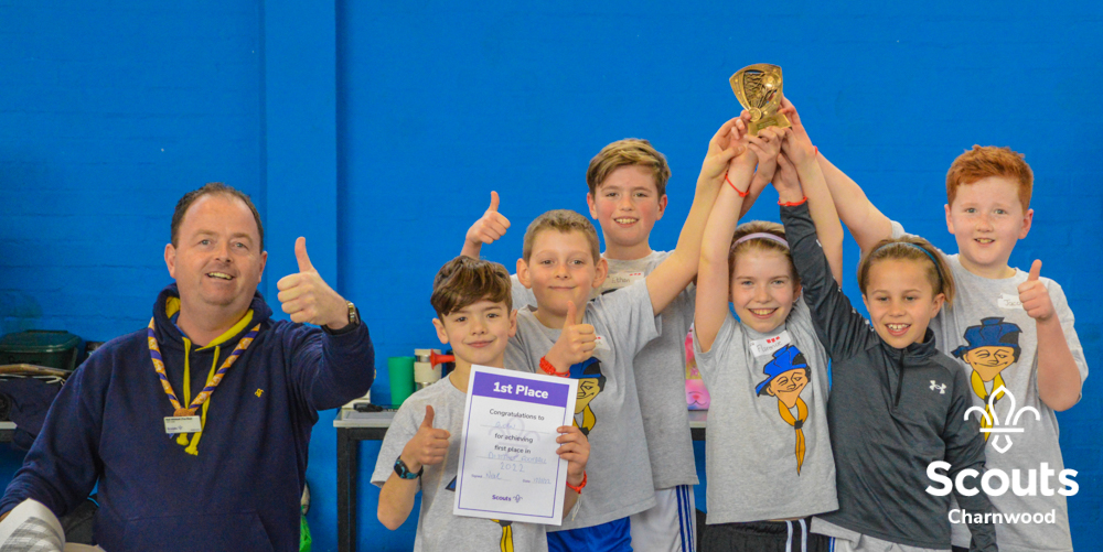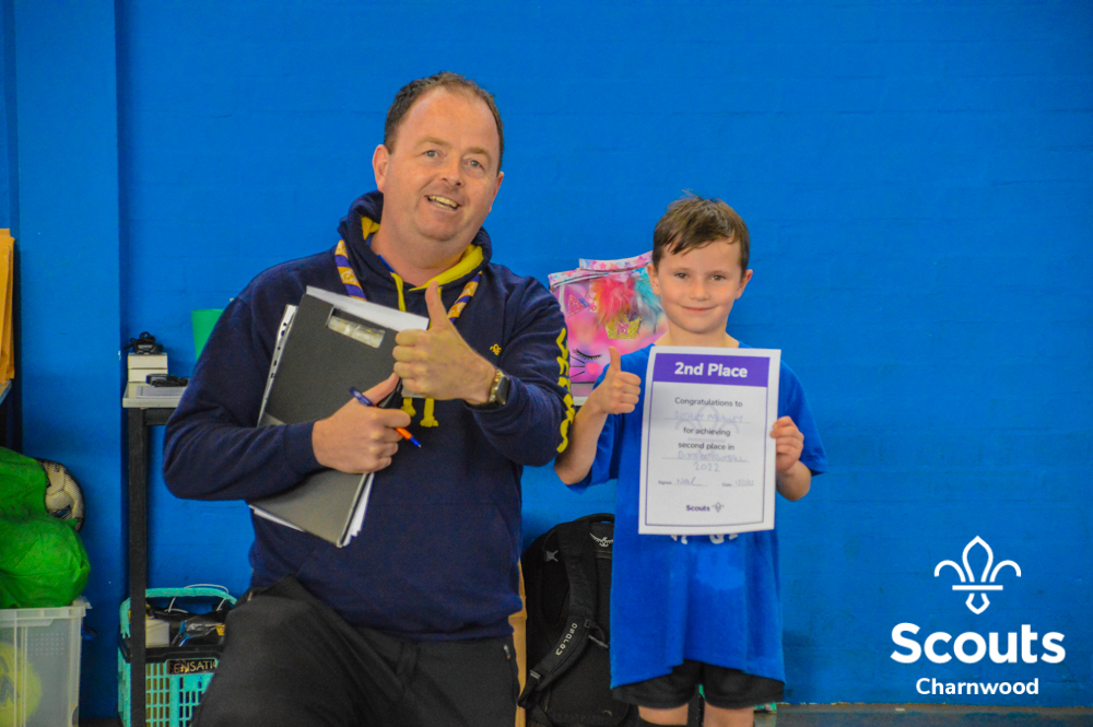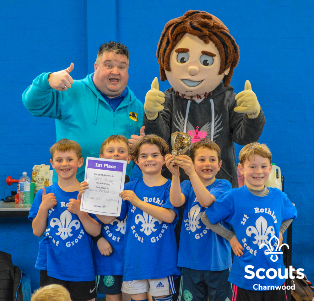 Next up it was the Beavers, at their first major event of the year. Like the Cubs they had several matches to find the top four teams to go into the semi finals and the final. The Beavers final was a very close but our 2022 Beaver Champions where Rothley! The Beavers winners trophy was presented by a special visitor, Charlie Charnwood!