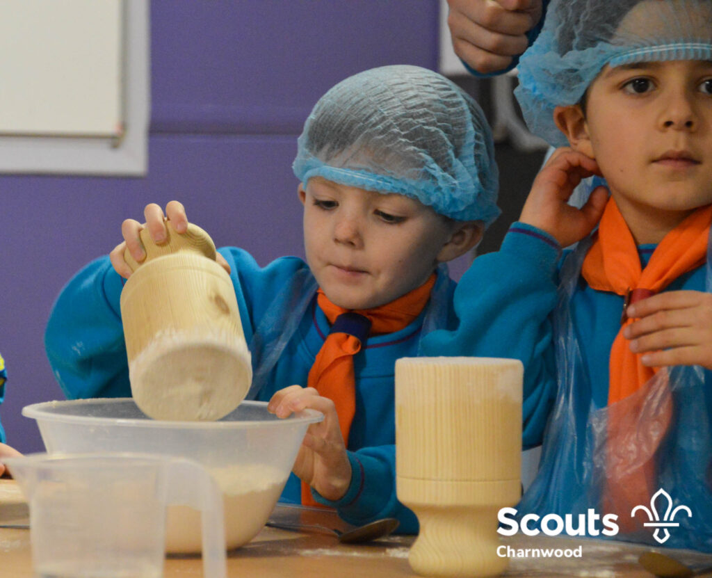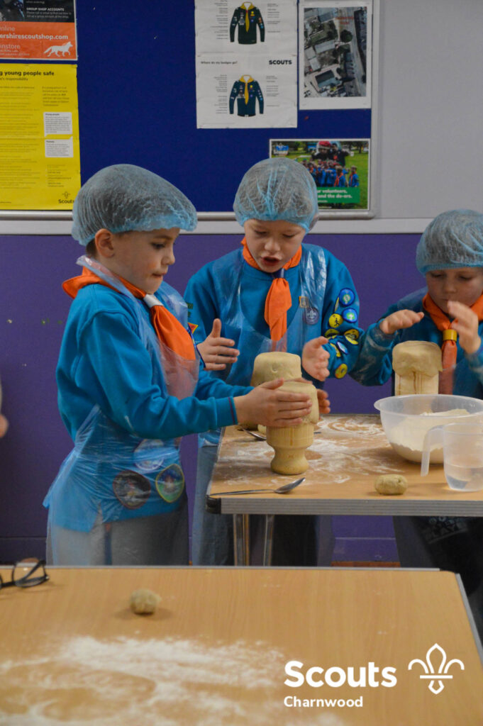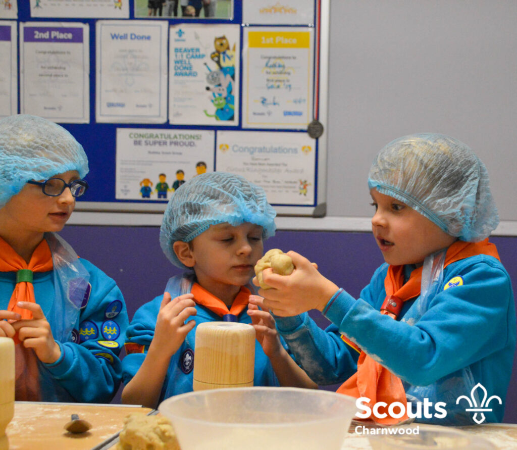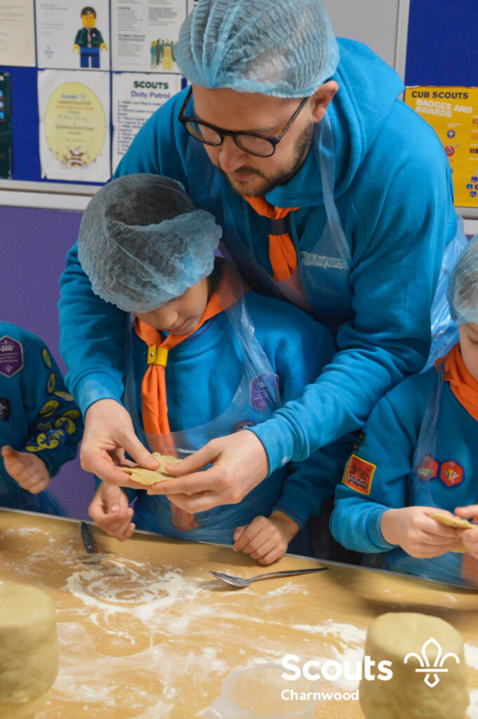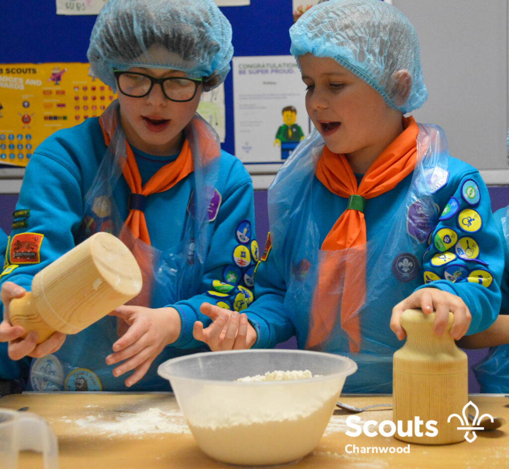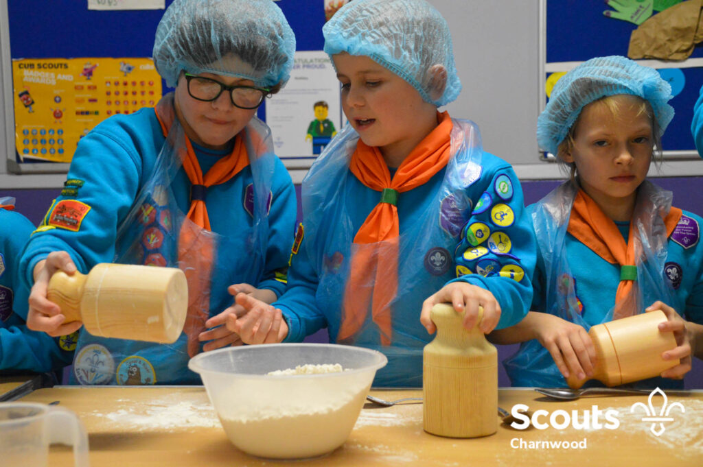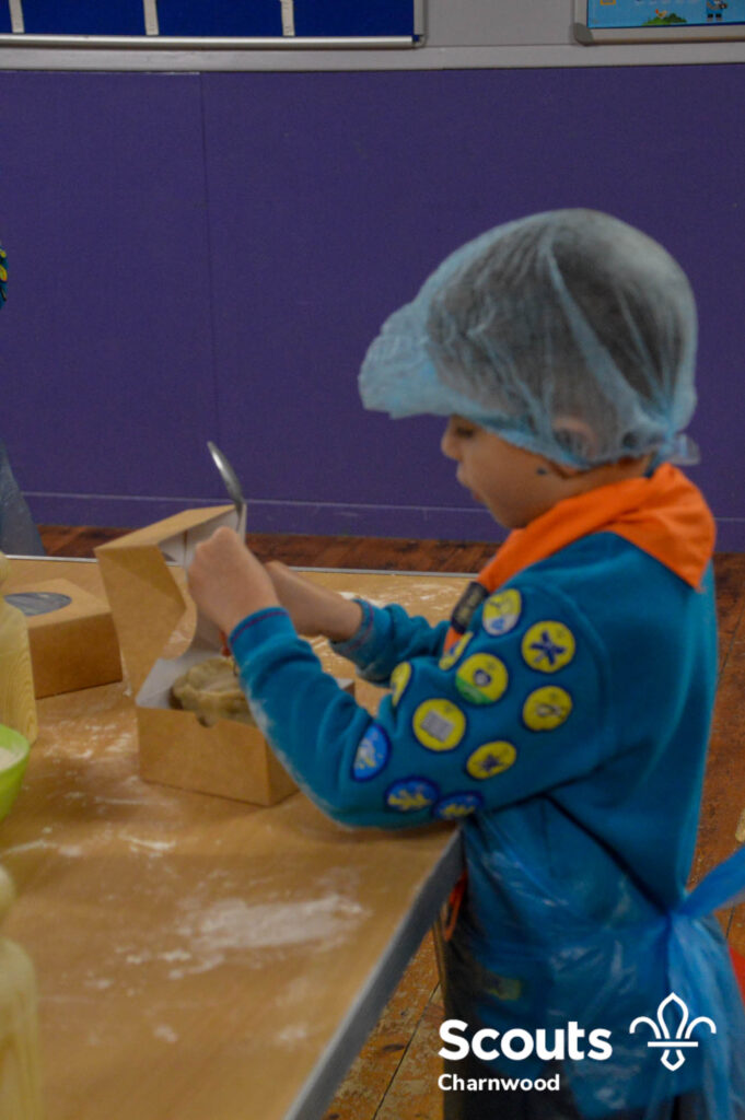 Under the expert guidance of Master Pie maker Claire the Beavers flowered the tables and moulded their pastry around a traditional dolly. Once they had successfully made their pie bases they were filled with local pork from Packington Free Range and pie lids put on.