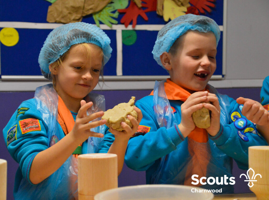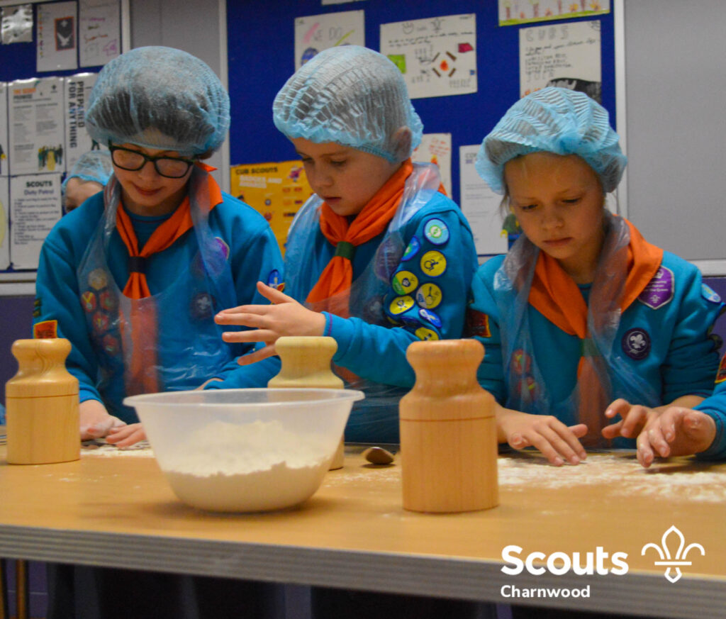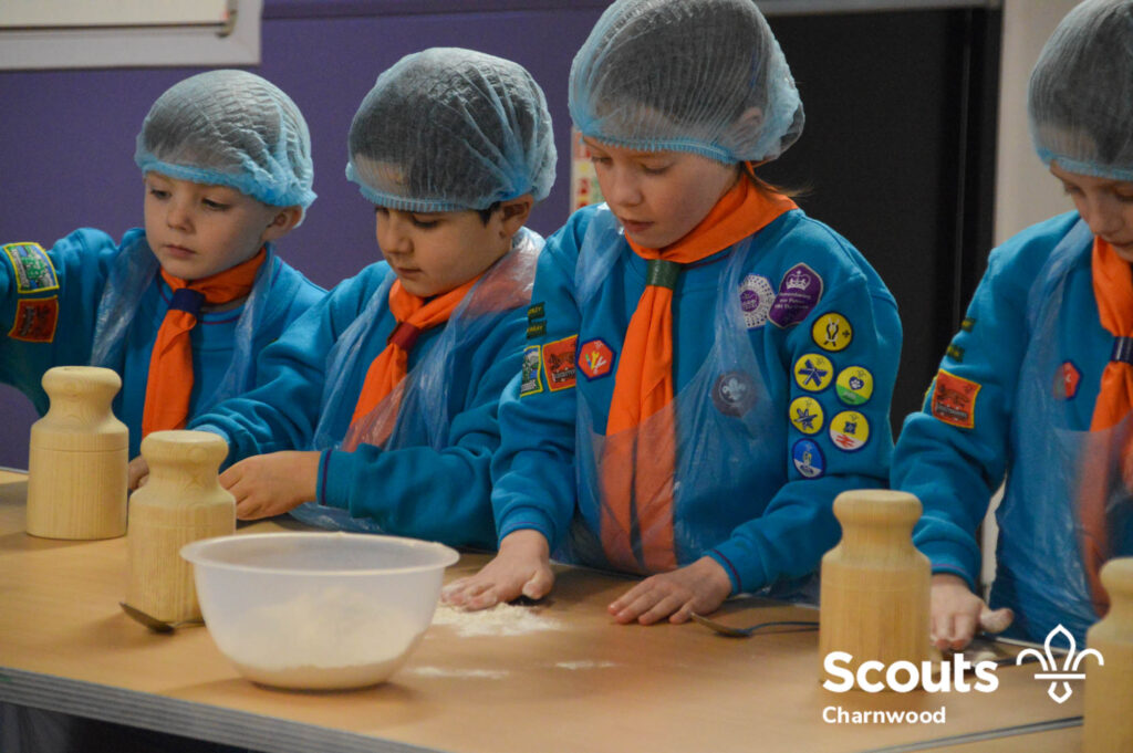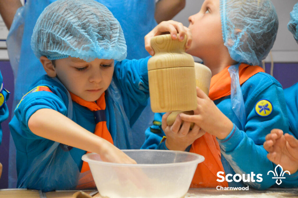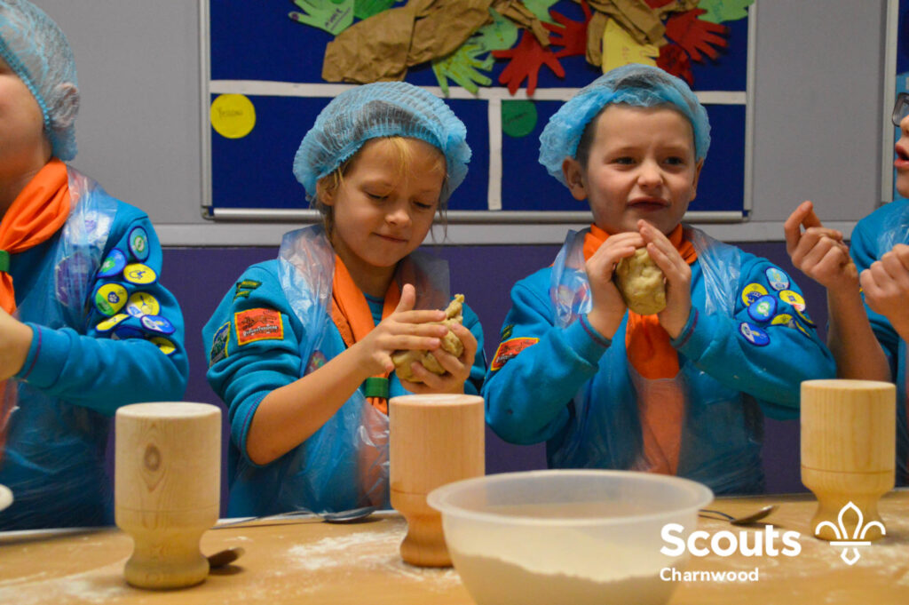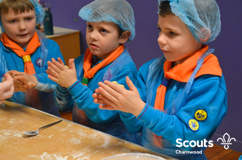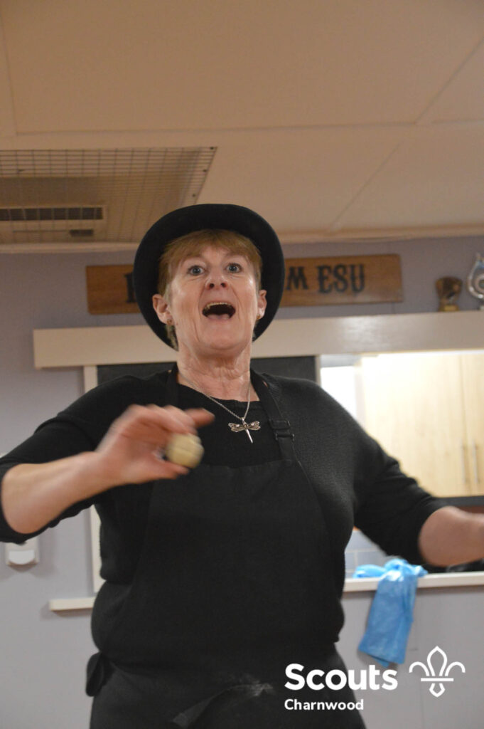 Under the expert guidance of Master Pie maker Claire the Beavers flowered the tables and moulded their pastry around a traditional dolly. Once they had successfully made their pie bases they were filled with local pork from Packington Free Range and pie lids put on.