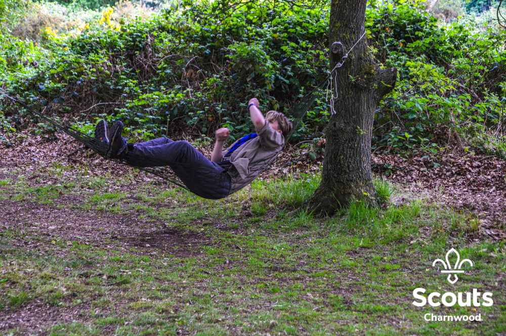 Arriving on Friday evening, Cubs, Scouts and Explorers put their tents and hammocks up and excitedly set out their beds ready for the first night of camp. Once the tents where up it was time for the opening ceremony where DC Paul and the District team welcomed everyone to camp before moving on to the campfire circle for an evening of singing and dancing. After a brilliant campfire it was time for hot dogs, hot chocolate and bed.