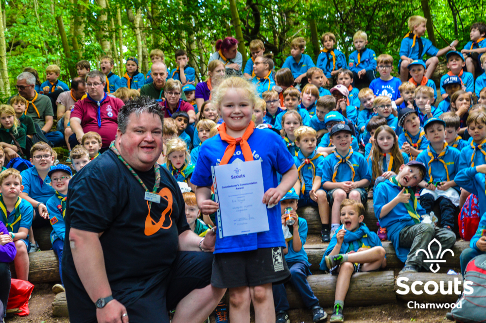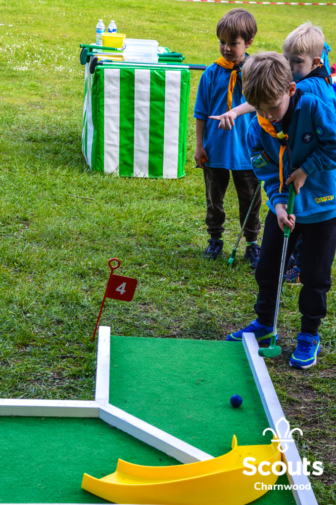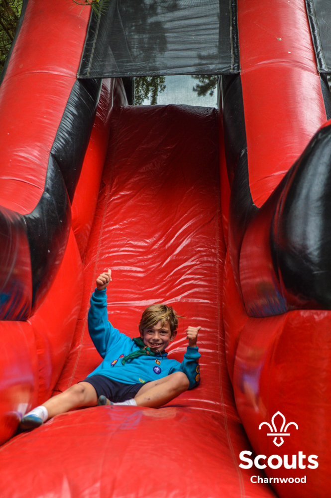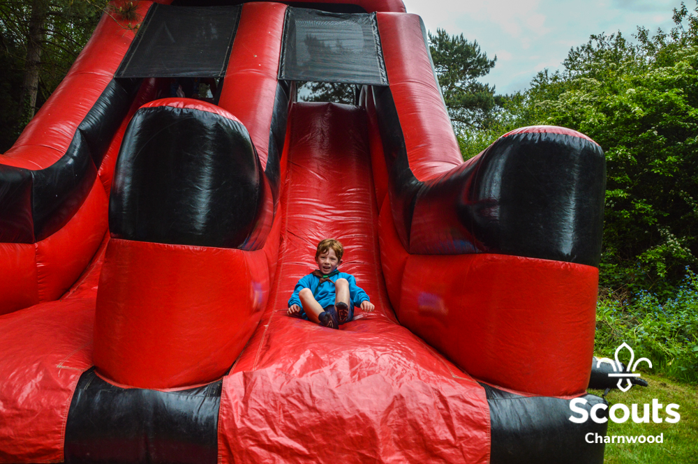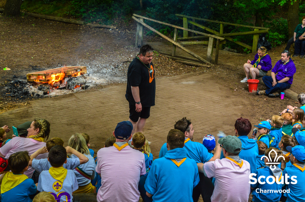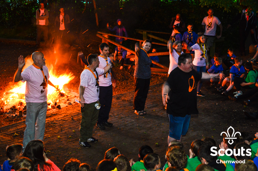 Whilst all this was going on four coaches full of Beavers arrived for their activity day full of activities which included cross bows, pedal cars, s’mores, crazy golf and of course bouncy castles! The Beavers where also visited by the one and only Charlie Charnwood who went and said hello to everyone during lunch. At the end of activity day the Beavers enjoyed their very own campfire with ADC Mr T who also presented some special awards. Two Chief Scout Bronze awards, the highest award a Beaver can achieve and a Commissioners Commendation Award, only the second ever presented in the District, to Evie from Rothley for helping to save her neighbour!