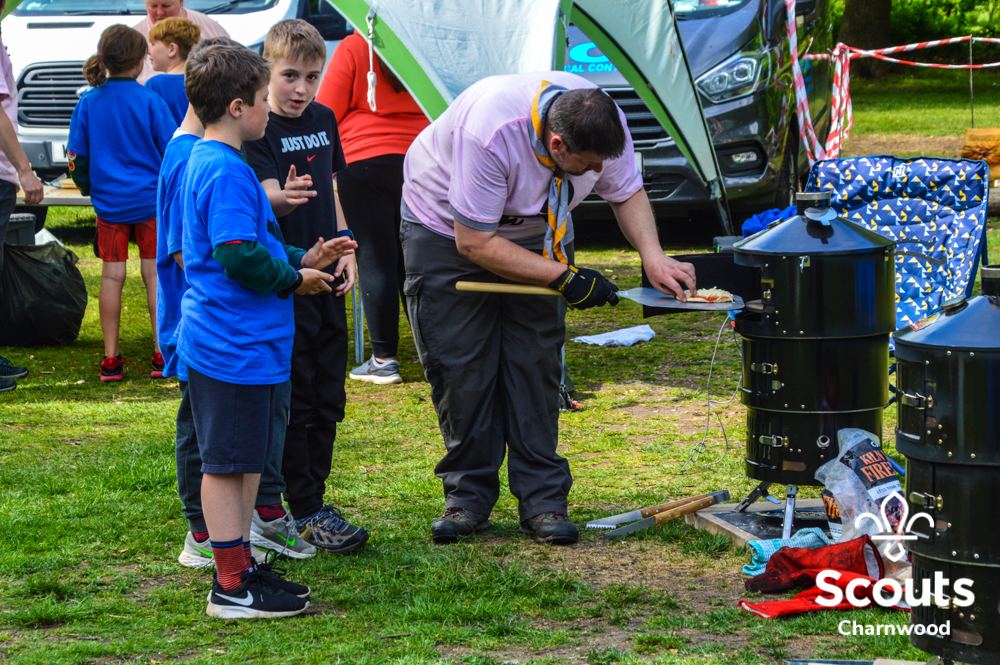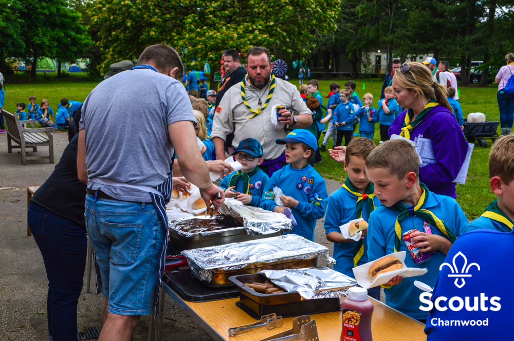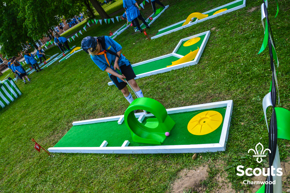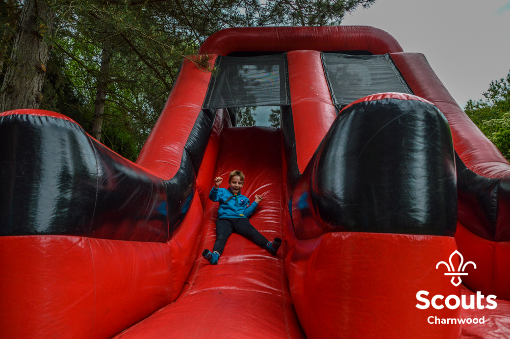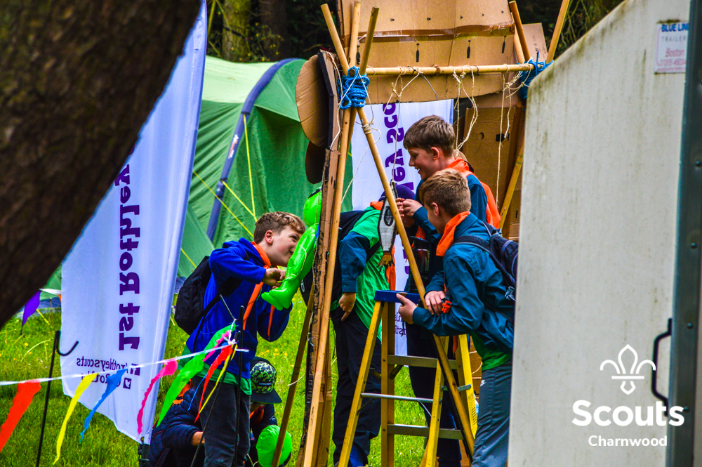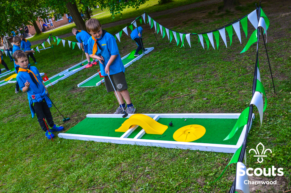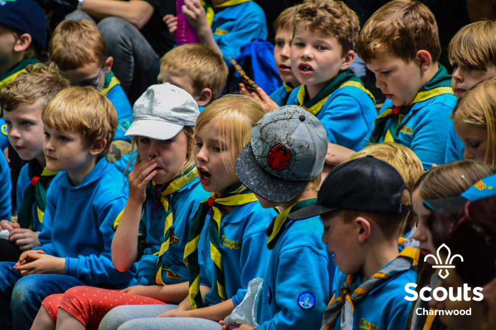 Whilst all this was going on four coaches full of Beavers arrived for their activity day full of activities which included cross bows, pedal cars, s’mores, crazy golf and of course bouncy castles! The Beavers where also visited by the one and only Charlie Charnwood who went and said hello to everyone during lunch. At the end of activity day the Beavers enjoyed their very own campfire with ADC Mr T who also presented some special awards. Two Chief Scout Bronze awards, the highest award a Beaver can achieve and a Commissioners Commendation Award, only the second ever presented in the District, to Evie from Rothley for helping to save her neighbour!